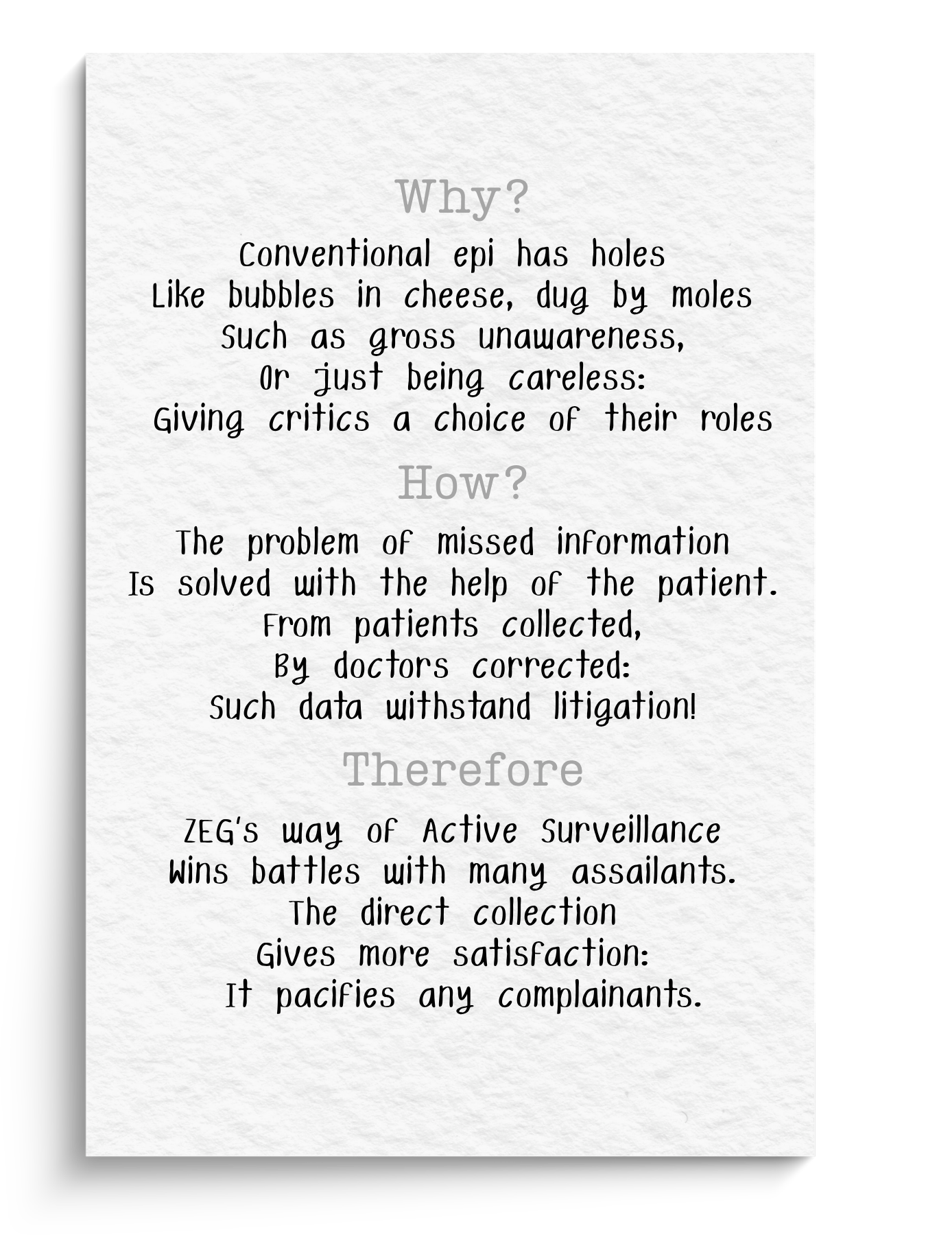 We generate and deliver following thoughtful, consistent rules of Good Evidence Practice (GEvP).
