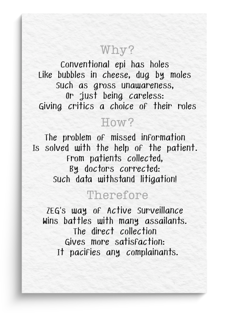 We invented new study methodologies, e.g. EURAS/INAS design, based on decades of experience on active surveillance with direct-to-patient contact.
